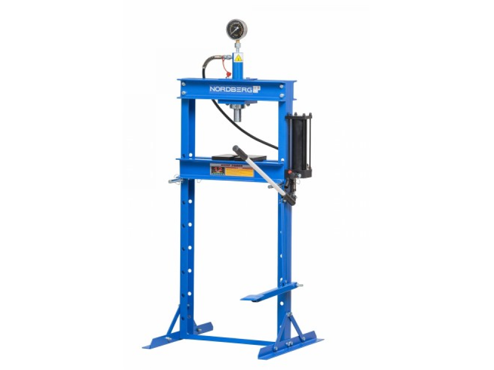 Напольный гидравлический пресс с ножным приводом NORDBERG N3612F Надежная конструкция рамы Регулируемый стол Две пластины-трапеции Гидравлический цилиндр 12 тонн. Гидравлический насос с ручным и с ножным приводом Автоматический возврат поршня. Предохранительный клапан для защиты от перегрузок. Глицеринозаполненый манометр 90 мм для контроля силы нагрузки. Поставляется в двух картонных коробках.